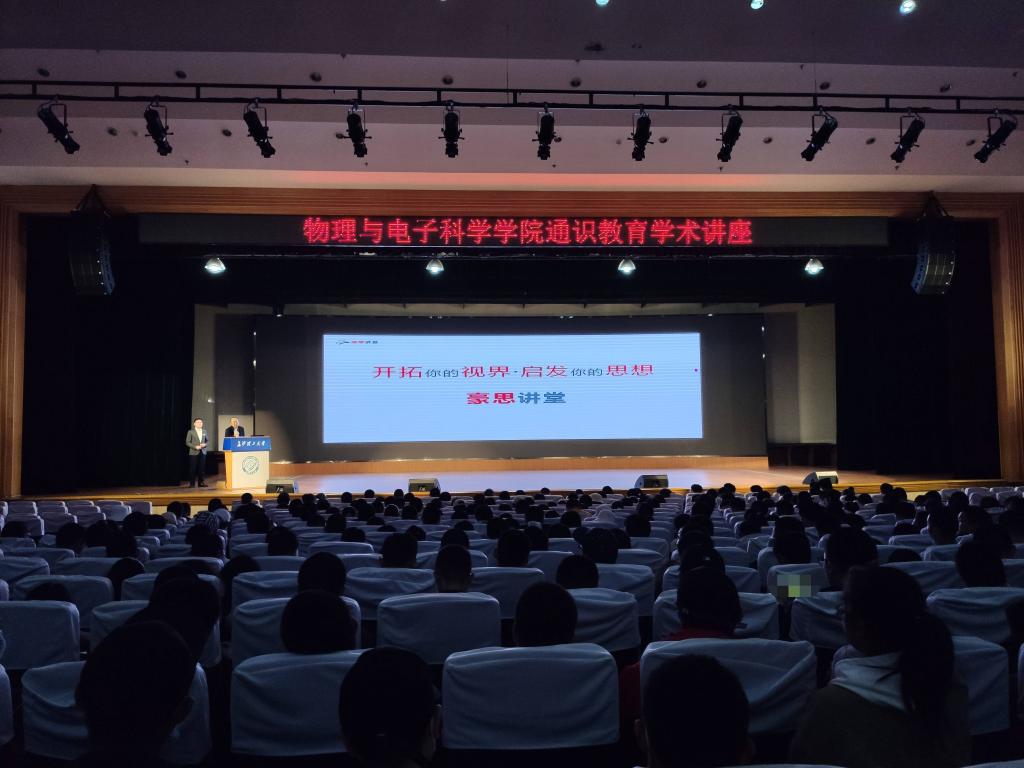 10月27日下午,我院在金盆岭校区五号教学楼成功举办“勇立潮头,争做时代弄潮儿”主题讲座。讲座由物电学院副院长刘新海主持,明和集团董事长助理马元君主讲。全校共600余师生参加此次活动。