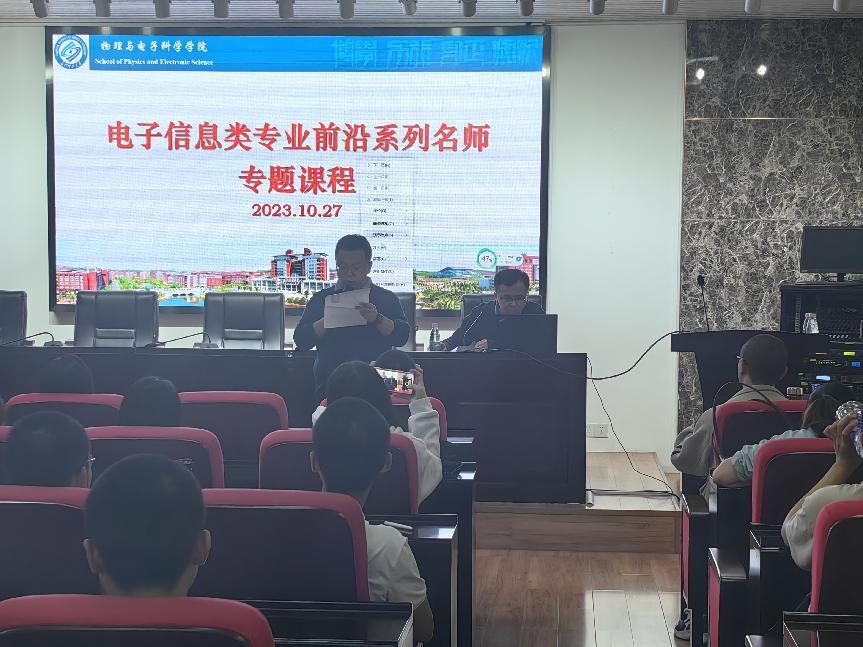 10月27日下午14:10,湖南省杰青获得者、中南大学物理院蒋杰副教授,应邀成为我院电子信息类专业前沿系列名师专题课程的主讲人。蒋教授在理科楼B-413讲授了一堂以“类脑电子器件研究进展”为主题的专题课程,吸引了电子信息类专业150余本科生前来聆听。