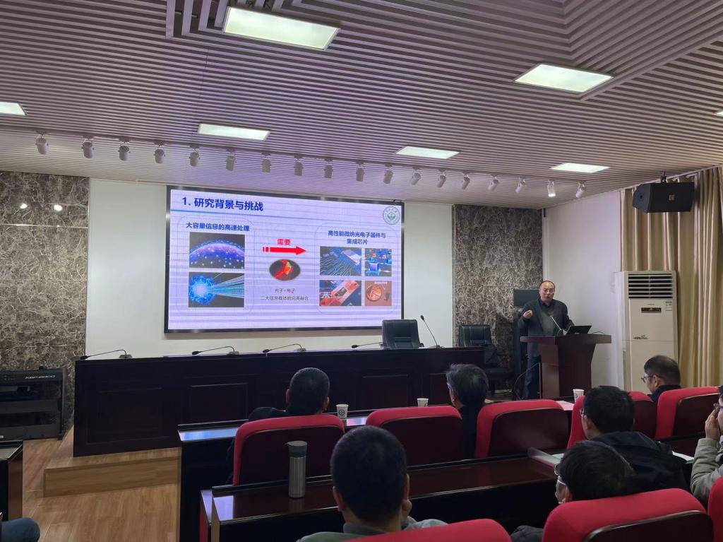 1月5日,国家杰出青年基金获得者和国家有突出贡献政府特殊津贴获得者,中山大学王雪华教授应邀来学院交流指导,在理科楼B413会议室作了题为《微纳量子光源与人工室温量子态》的学术报告。学院教师及研究生约120余人倾听报告,副院长(主持工作)张卫兵主持报告会。