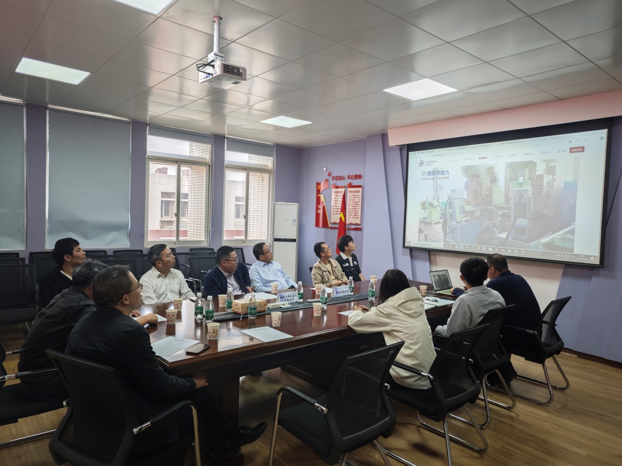 围绕无人化冲压机器人关键技术,他们介绍了沁峰机器人的主要业务及面临的技术挑战,物电学院人工智能科研团队介绍了实验室承担项目的情况,并对可能的合作进行了深入的探讨。双方均表示希望未来能加强合作,实现校企共赢!