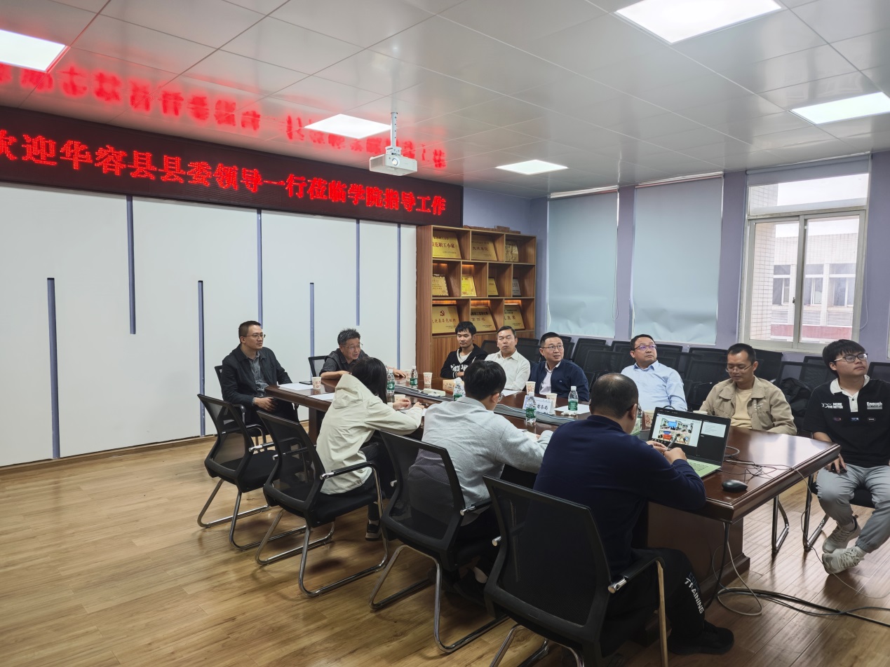 随后,华容县商务局党组书记、局长卢昀石和湖南沁峰机器人有限公司董事长陈静一起到物电学院进行了座谈。