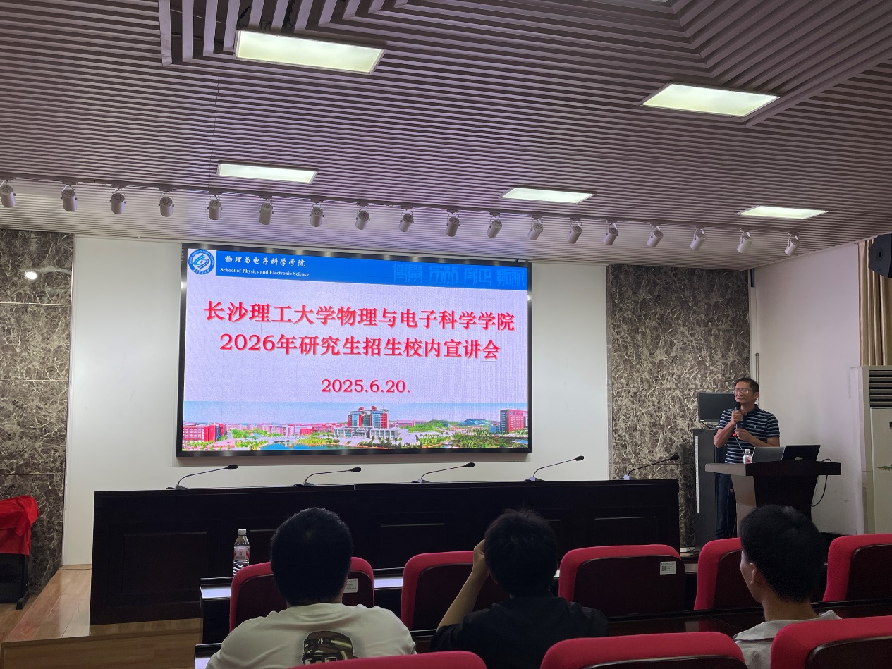6月20日晚,物电学院2026年研究生招生校内宣讲会在理科楼B413举办。常务副院长邓科、副院长张卫兵、副院长刘斯、学院科研团队教师代表张志刚、曾波文、丁中科等及一百多名校内外学生和家长参加了本次宣讲会。副院长张卫兵主持会议。