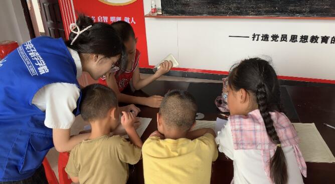 美术课怎么变成了历史课?这是永利集团88304官网物电学院支教团7月7日在怀化市麻阳县通达林村开展的爱国主题美术课堂。