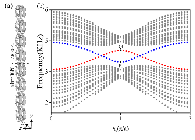 图1. 双层石墨烯声子晶体(a),其能带结构(b).
