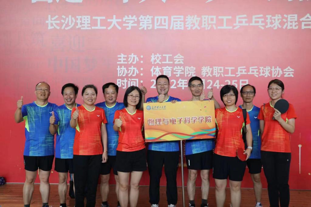 学院对此次乒乓球比赛高度重视,比赛期间,党委书记张国强、副院长张卫兵亲临比赛现场为运动员加油助威,张国强书记担任球队领队,党委副书记宋国宁、副院长兼分工会主席刘斯作为运动员亲自上场比赛。即将退休的厉江帆、袁剑辉两位教授也被邀请加入球队,在比赛中敢打敢拼,为学院荣誉而战,给年轻人树立了榜样。在主力队员刘新海、杨昌虎、廖家欣等几位老师的带领下,年轻队员们也都打出了气势,比赛场面精彩纷呈,打出了物电学院的精气神、打出了物电人的精神风貌。