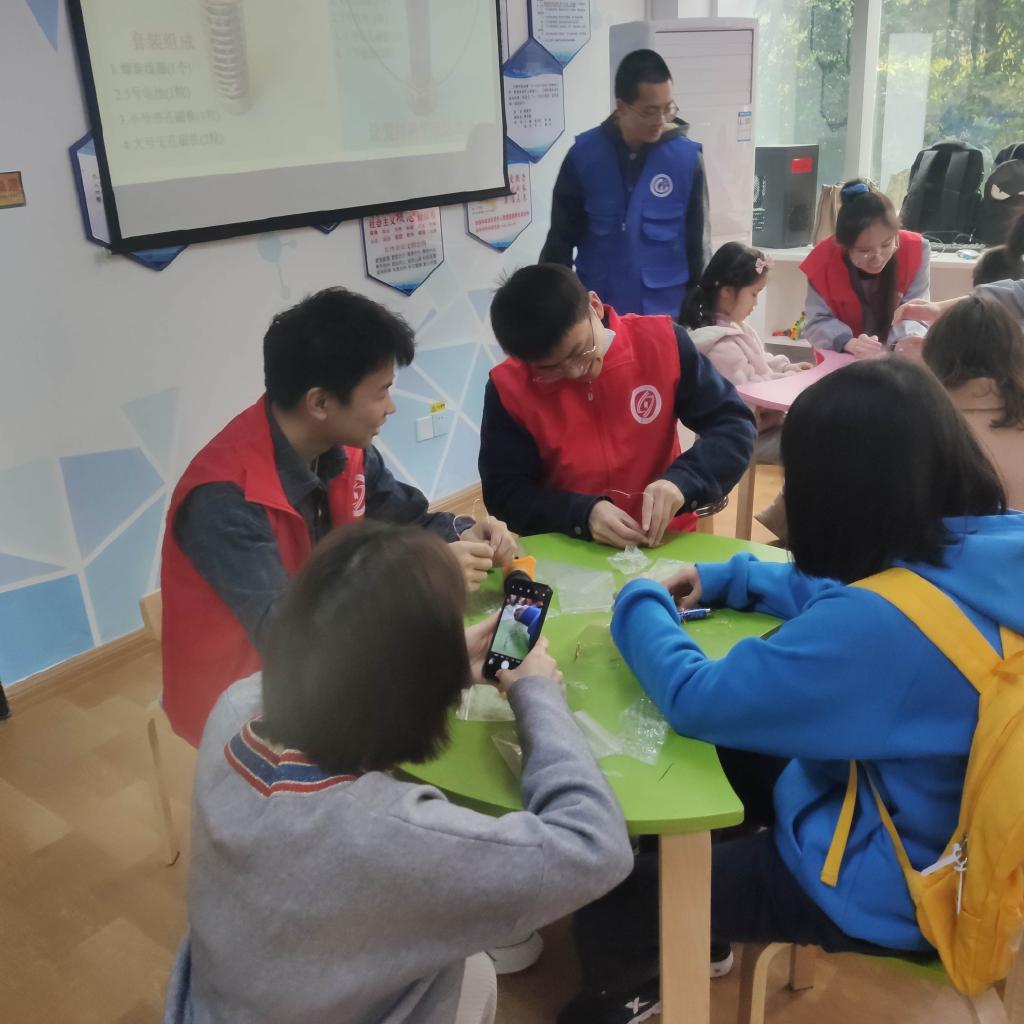 3月28日物电学院“小小科学家”团队进行了本学年第一次线下科普活动。本次活动共计10名志愿者参与,共有16名小朋友,分为四组,每组4人,今天实验主题为旋转的铜线圈,第一组的志愿者早早的就开始准备各种实验器材与活动场地。志愿者先为大家讲解了此次实验的目的,然后进行了实验操作示范,在操作过程中掺杂讲解让小朋友们更加理解操作步骤,然后引导小朋友手动完成实验,最后志愿者讲解了此次实验的实验原理。