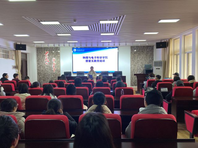 临近期末,为加强朋辈队伍建设,提升朋辈队伍的心理健康知识水平和助人能力,11月23日下午4:00,物电学院在理科楼B413举办朋辈队伍培训之心理危机的预防和干预讲座。讲座由心理辅导员蒋琳嫒老师主讲,院心理部组织,全体朋辈互助员参与培训。