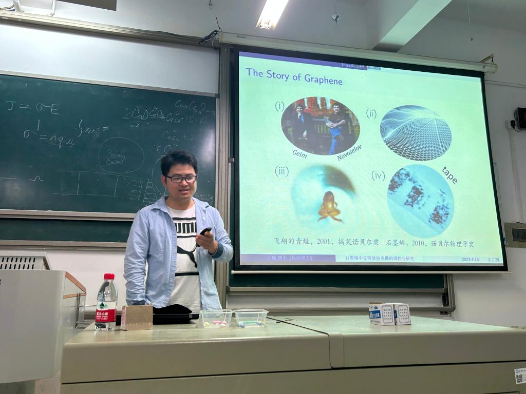 为提高学生对石墨烯的了解,4月14日下午16:00,物理与电子科学学院在云塘校区云工一B209举办“石墨烯中克隆狄拉克锥的调控与研究”通识教育讲座,本次讲座由王灿博士主讲。