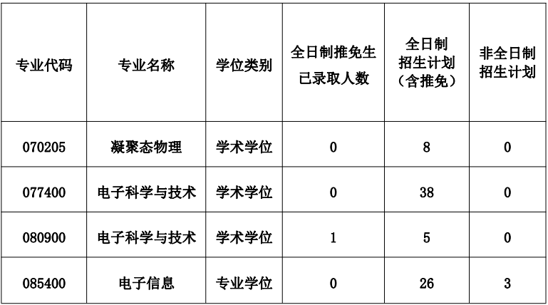 永利集团88304官网物理与电子科学学院2020年硕士研究生招生计划