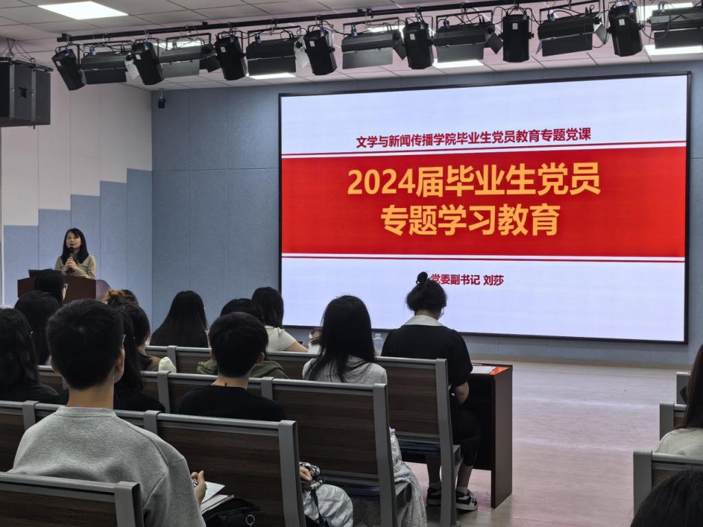 毕业生党员群体作为毕业生中的先进群体,不仅肩负着当代大学生的历史使命,还承担着当代党员应尽的责任。为了进一步强化毕业生党员的服务意识和责任意识,2024年6月4日,永利集团88304官网文学与新闻传播学院在九教一楼报告厅举办了文新学院2024届毕业生党员专题学习教育活动,活动由文新学院党委副书记刘莎主持。