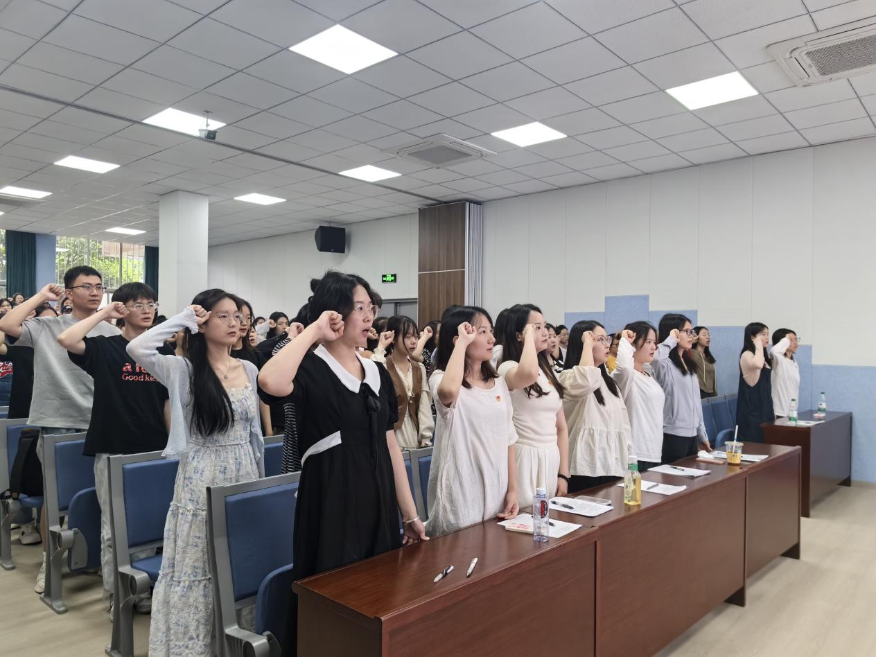活动最后,刘莎书记同志带领毕业生党员重温入党誓词,全体毕业生党员举起右拳,向鲜红的党旗重温了入党誓词。铮铮誓言,拳拳初心,毕业生党员在庄严的宣誓声中再次回顾入党之初许下的郑重承诺,也更加坚定了为共产主义事业奋斗终身的理想信念。