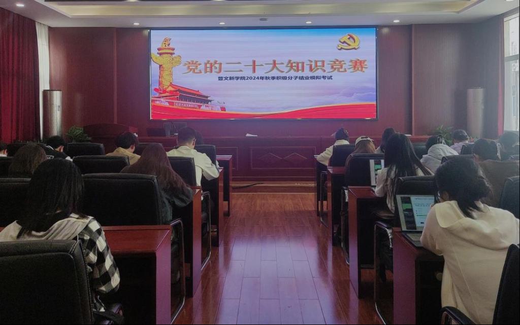 为贯彻落实党的二十大精神,积极探索“党建+互联网”新模式,进一步提升积极分子的理论知识水平,11月12日12时10分,“党的二十大知识竞赛暨文新学院2024年秋季积极分子第一次模拟考试”于永利官网金盆岭校区九号教学楼218室成功举行。
