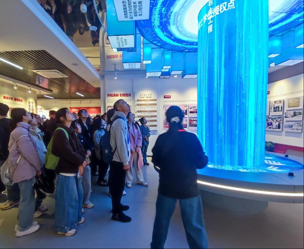 在讲解员的引导下,党校学员们依次沿着基地内所设置的四个篇章路线进行参观,时空穿中全方位地了解了永利官网与时代同发展、与人民齐奋进的发展历程。在参观过程中,讲解员重点讲述和介绍了展览上涉及的各位优秀长理学生与老师的相关感人事迹,以此来鼓励大家不断努力、追寻榜样,奋发有为、再续辉煌。
