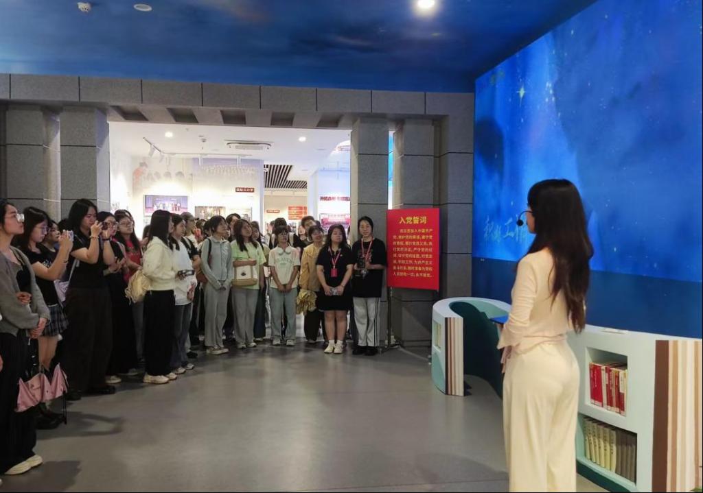 参观过程中,党校学员们积极交流互动。他们围在大屏幕前,重温着入党的誓词,不时向讲解员提问,深入探究故事细节。同时,学员们还结合所学专业,对展品背后的历史意义进行了深入挖掘和分享,进一步增强了学习的针对性和思考性。预备党员培训班学员陈婷婷在参观过程中表示:“以前在学习中,我更多地关注专业知识的积累。通过这次参观,我才深刻地认识到,学校不仅注重知识的传授,更重视能力的培养和素质的提升。在这样的教育环境下,我相信我们每一位同学都能成为具有创新精神和实践能力的优秀人才。我们也应当更加努力,用实际行动回报学校的期望。”