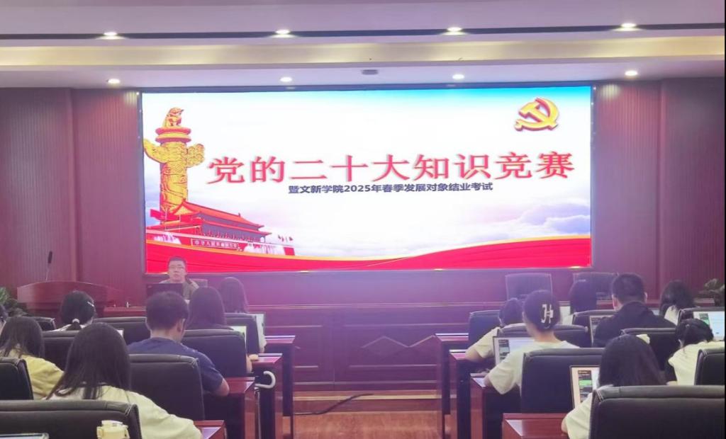 为贯彻落实党的二十大精神,积极探索“党建+互联网”新模式,进一步提升发展对象的理论知识水平,5月22日12时10分,“党的二十大知识竞赛暨文新学院2025年春季发展对象结业考试”于永利官网金盆岭校区九号教学楼218室成功举行。
