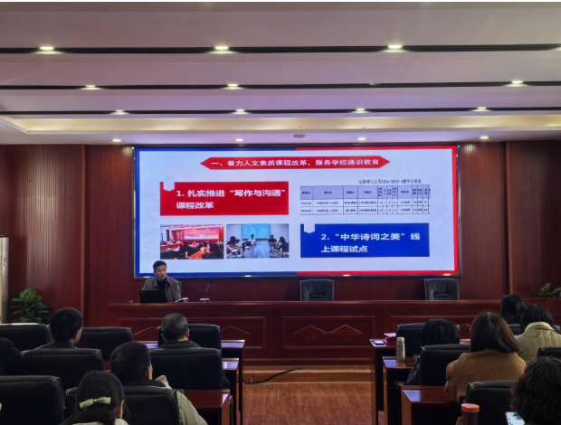 院长刘建新做2024年度学院工作报告,全面总结了学院在人才培养、学科建设、科学研究、师资队伍建设、学科竞赛等方面取得的成绩,以及年度重点工作任务完成情况。他指出,过去的一年中,学院进一步加强党建引领,优化内部治理,提高人才培养质量,塑强学科、人才、科研等核心竞争力,在学位点建设、师生典型培育、教学平台建设等方面取得突破,全力推动了学院的高质量发展。学院扎实推进人文素质课程“写作与沟通”改革;组织学生读书会,推进“四个十”工程;获批国际中文教育和戏剧与影视两个硕士点,学位点布局进一步优化;国家社科基金、省部级课题立项数及智库成果继续呈现良好发展势头;成功举办学院办学四十周年系列活动,大力凝聚了推动学院高质量发展的共识和力量。他提出了学院下阶段发展的思路与目标,强调要提高站位,进一步推进人文素质通识课程改革,服务学校复合型创新性人才培养;要找准定位,进一步聚焦区域文化和传媒产业,赋能地方经济社会发展;要立足本位,进一步凝练专业特色,加强学科建设,扩大学科专业影响力。