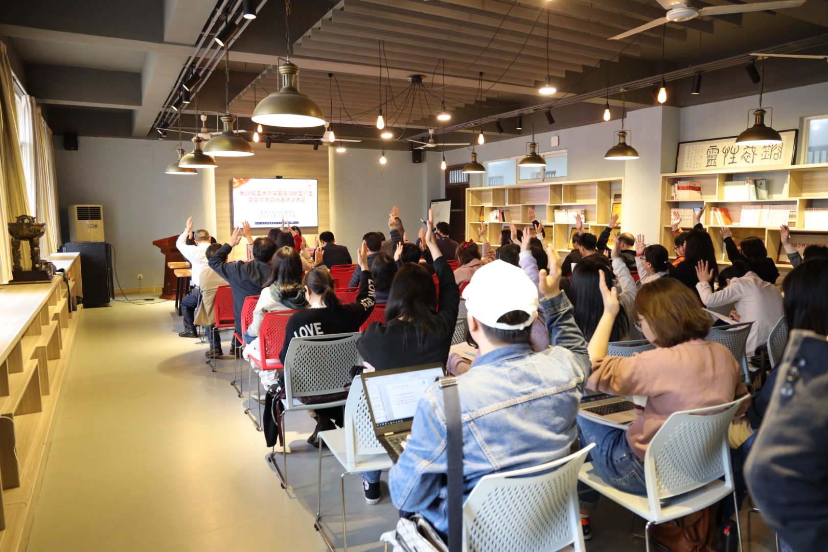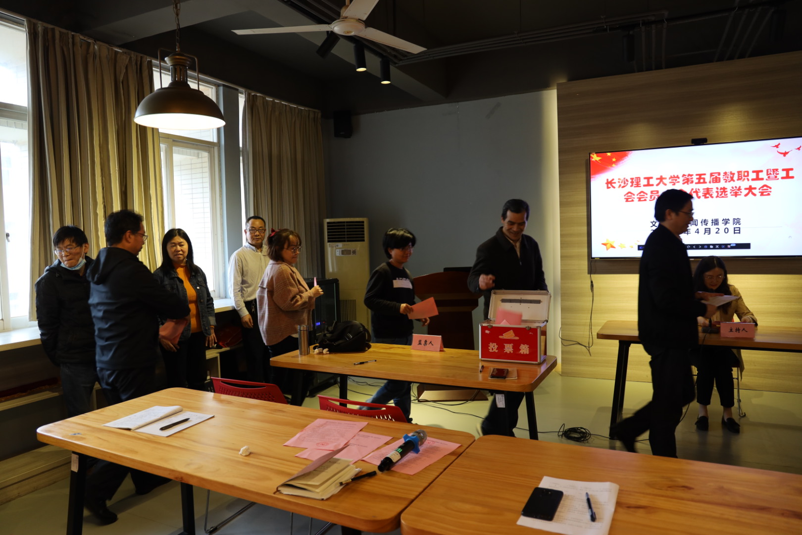 4月20日下午,文新学院在文科楼B501室召开永利集团88304官网第五届教职工暨工会会员代表大会代表选举大会。差额选举产生了出席学校第五届“双代会”的代表。学院全体院领导及教职工共55人出席。会议由学院分工会副主席汤路主持。