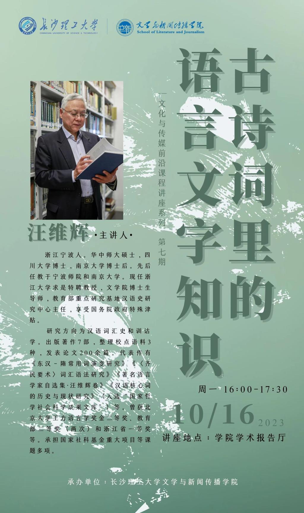 讲座预告:古诗词里的语言文字知识