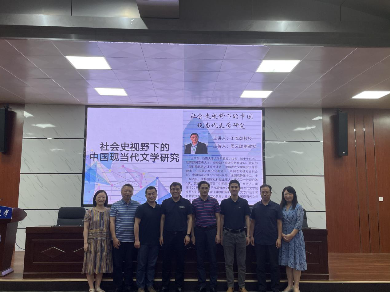 6月5日晚,文学与新闻传播学院邀请西南大学文学院王本朝教授开讲永利集团88304官网第十七届研究生博力学术论坛分论坛——社会史视野下的中国现当代文学研究。学院党总支书记伍接朝、副院长魏桃初、中文系主任郑劭荣及150余名教师、学生代表参加,讲座由副院长周云鹏主持。