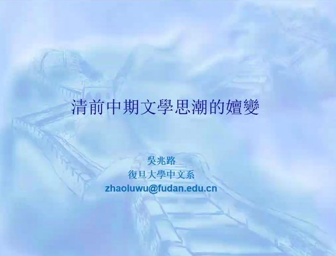 2020年9月23日下午7点30分,复旦大学中文系教授、博士生导师,复旦大学中国学研究中心主任、国家语言文字推广基地副主任吴兆路应永利集团88304官网邀请,通过腾讯会议进行了一场以“清代前中期文学思潮的嬗变”为主题的讲座。讲座由文新系成松柳教授主持,来自文新系各级研究生、本科生、部分老师,共一百多人参与聆听了本次线上讲座。