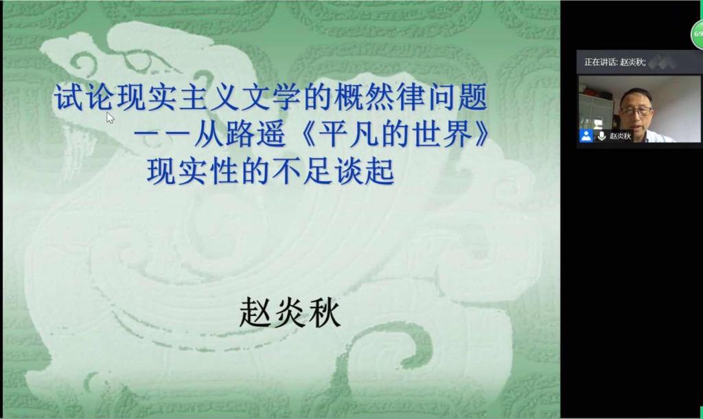 疫情隔断了老师和学生们的现实相聚,却阻止不了我们的网上会面。6月6日上午九点,湖南师范大学文学院教授、博士生导师、湖南省文艺理论学会会长、《中国文学研究》主编赵炎秋教授受永利集团88304官网邀请,在腾讯会议上为同学们开讲,讲座吸引了文新系同学及校内外上百名听众。