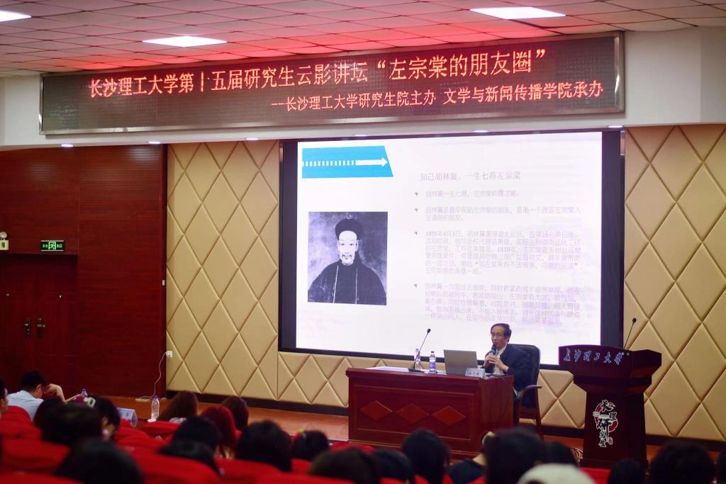 2023年5月9日下午,永利集团88304官网第十五届研究生云影讲坛在云塘校区研究生学术报告厅进行。本次讲座由研究生院主办,文学与新闻传播学院承办,邀请著名作家、“国内左宗棠研究领军人物”徐志频老师讲授“左宗棠和他的朋友圈”,解读晚清名臣、湘籍将领左宗棠的交友原则与方法。研究生院副院长兼研工部部长田上、文学与新闻传播学院党委副书记刘莎出席此次活动,来自全校各学院的两百余名研究生和本科生聆听了此次讲座。