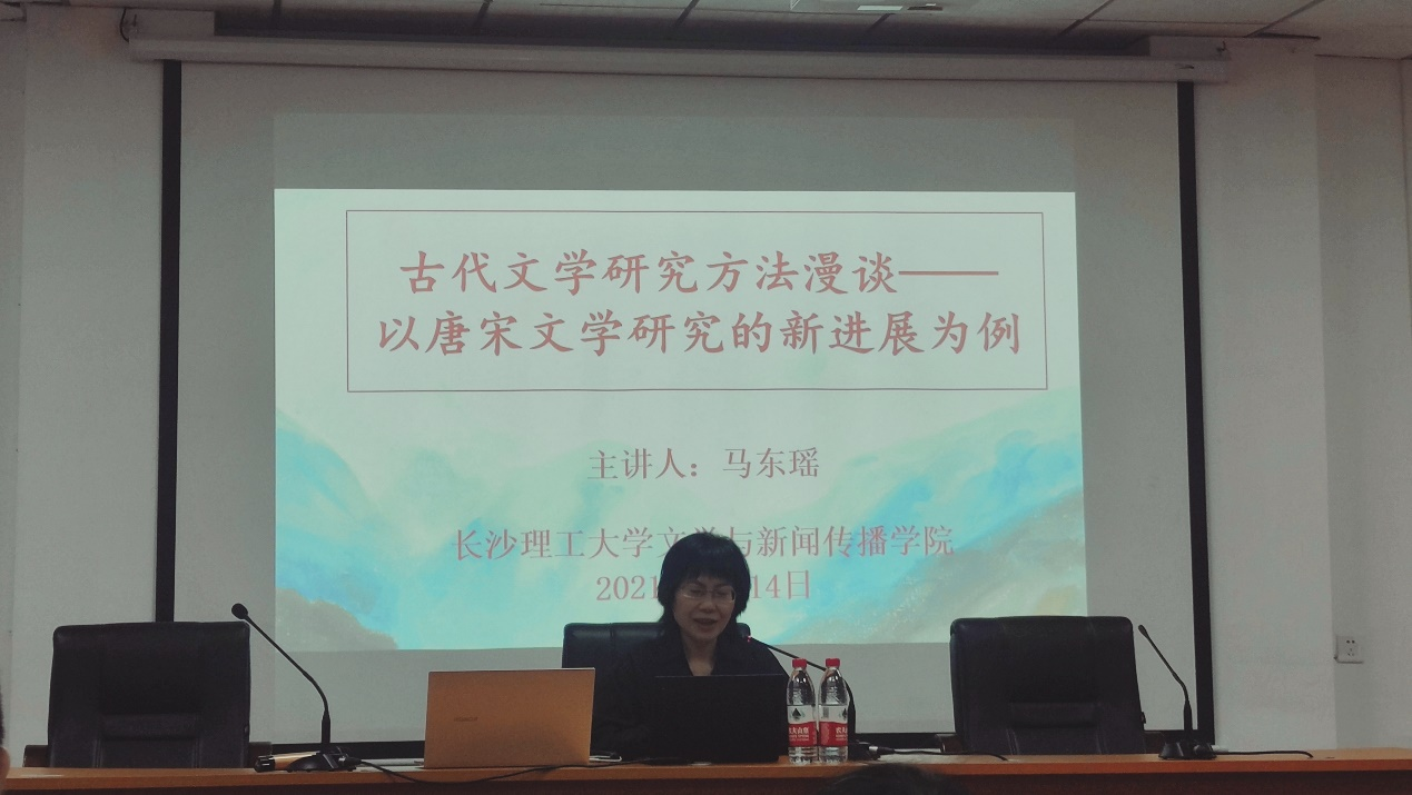 2021年5月14日下午2时30分,北京大学中文系博士、历史系博士后、北京师范大学文学院教授、博士生导师、文学院副院长马东瑶教授受永利集团88304官网邀请,在金盆岭校区2教101教室进行了以“古代文学研究方法漫谈——以唐宋文学研究的新进展为例”为主题的学术讲座。讲座由文新院郑劭荣教授主持,来自文新院各级研究生、老师参与此次讲座。