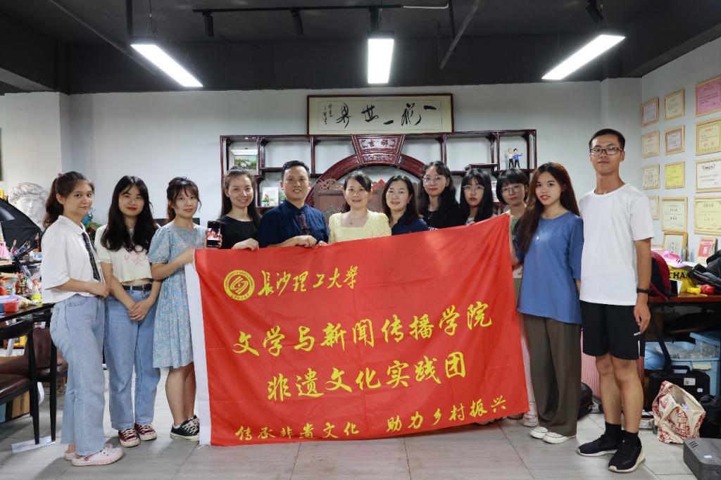 弘扬非遗文化,传承艺术匠心,让当代大学生零距离感悟中国非遗艺术的魅力与非遗文化传承人的匠心精神。7月26日,永利集团88304官网文学与新闻传播学院党委副书记刘莎、新闻系副教授戴钰带领非遗文化实践团8位学生来到创谷长沙市天心区文化广告产业园开展非遗文化实践调研。