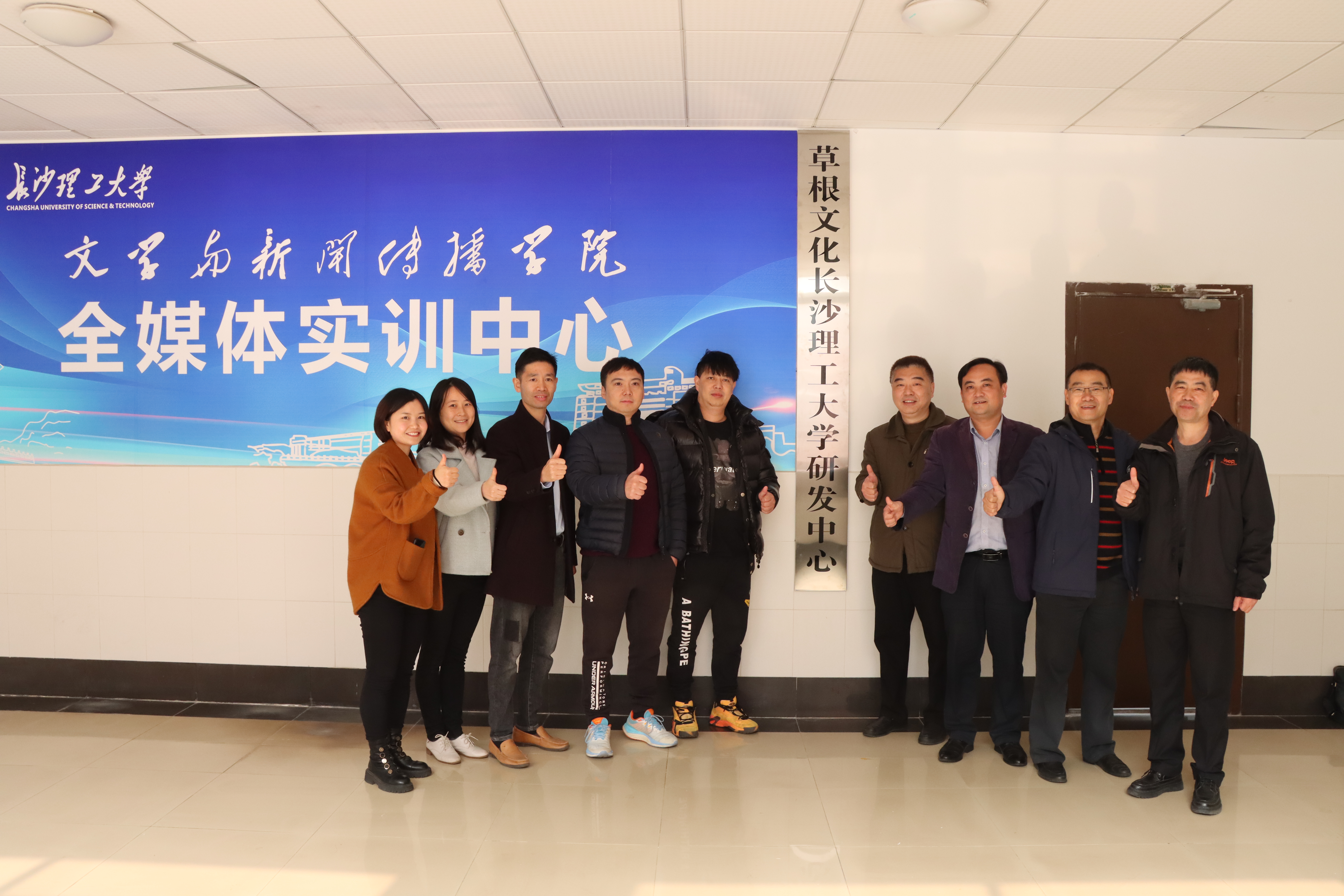 最后,伍接朝、刘建新、段明、潘佳君共同为草根文化永利集团88304官网研发中心揭牌并合影留念。(文/楚艳鸽、由杨瑞芃,图/邝宣,刘莎审)