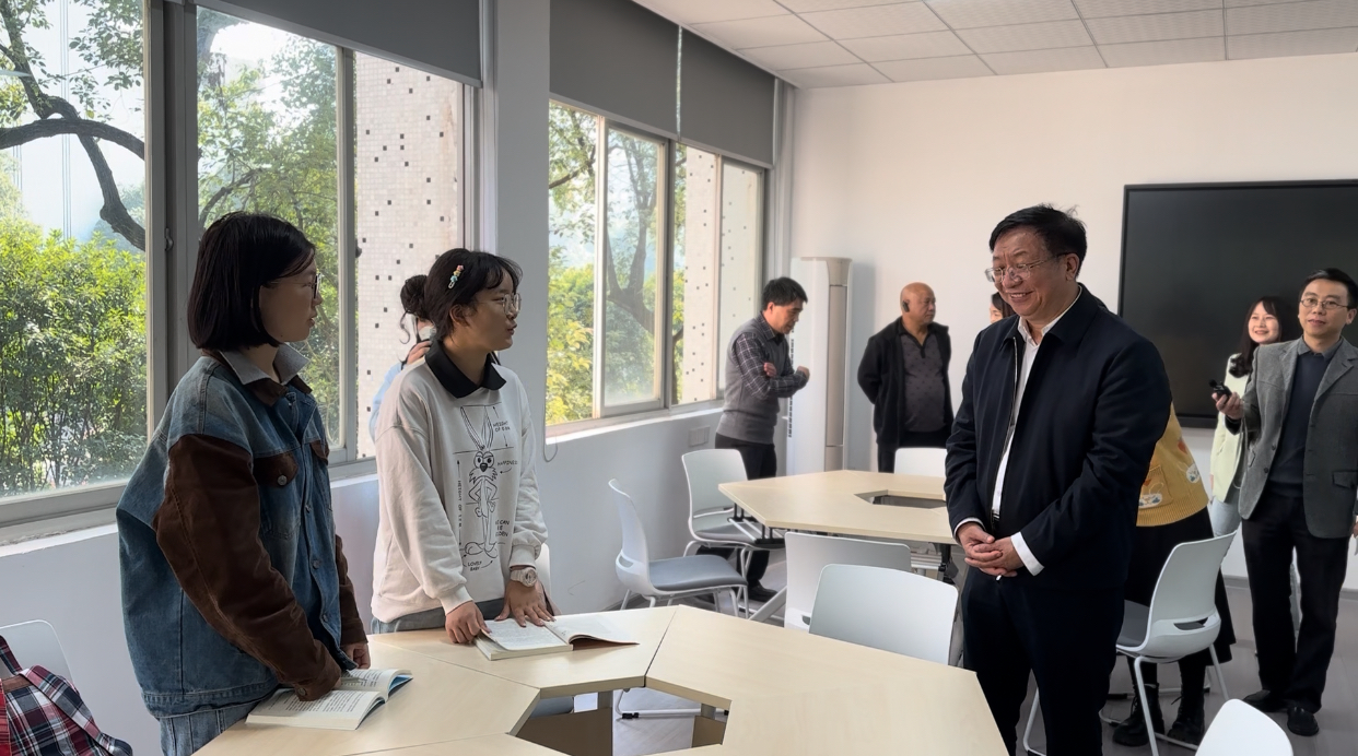 1123日上午,党委书记付宏渊,校长曹一家,党委副书记刘建民,副校长谈传生、刘朝晖、钱国平,党委委员方琼等莅临文新学院考察。校领导一行重点考察了学院实验室建设和运行情况、“三全育人”落实情况和本科教育教学审核评估相关工作情况。