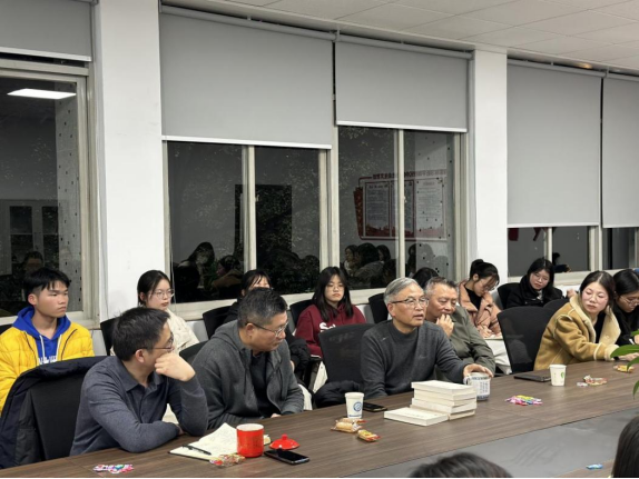 2023年11月30日晚,第二期“长理中文岭上谈”师生交流活动在永利集团88304官网金盆岭校区九号教学楼中文系会议室举行。今年正值永利集团88304官网中文系建系40周年,为了增进对中文系建设历史的了解,学习前辈的求学治学经验,中文教工党支部特别邀请亲历中文系最初建设过程的成松柳教授担任主讲嘉宾。文新学院陈仁凯书记、周云鹏副院长、郑劭荣教授、建筑学院副院长欧阳国辉教授、王轶老师、图书馆张裴皓老师与中文系部分老师也来到现场,全程参加了本次活动。