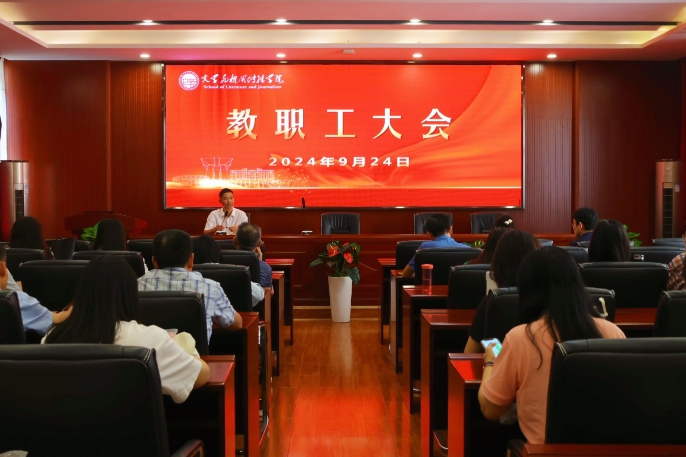 9月24日下午,学院在院学术报告厅召开教职工大会。会议由院长刘建新主持,全体教职工参加会议。
