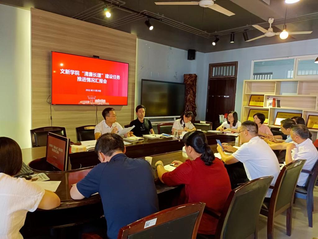 会上,陈仁凯带领大家学习了学校《关于开展2022年党风廉政建设责任制落实情况检查的通知》和《文新学院党委2022年“清廉长理”建设责任清单》,并总结了学院上半年党风廉政建设情况,重点分析了学院“清廉长理”建设责任清单推进及党风廉政建设方面可能存在的风险点和隐患,并就下半年党风廉政建设工作作出安排。他指出,学院班子成员能坚持按照党风廉政建设的要求,坚决做到“两个维护”的政治自觉,扎扎实实把党中央和上级党组织的各项决策部署和履行主体责任要求落到实处,上半年来,学院以全面从严治党要求为指引,以疫情防控工作和师德师风建设为抓手,以“清廉长理”建设为着力点,强化主体责任,严格实行“一岗双责”,切实加强了学院党风廉政建设。他强调,学院党委将会坚持把党风廉政建设与其他各项工作同部署、同落实、同检查、同考核,集中精力把好方向、定好政策、抓好大事、管好干部,以党的二十大召开为契机,精心谋划党建工作亮点,聚焦中心工作,以师德师风建设为抓手,继续加强内部治理和制度建设;要紧紧围绕立德树人这个根本任务,建立健全学院反腐败工作体制机制,营造风清气正的发展氛围,让廉洁文化根植在每一位师生的内心深处,为建设“清廉长理”贡献文新力量。