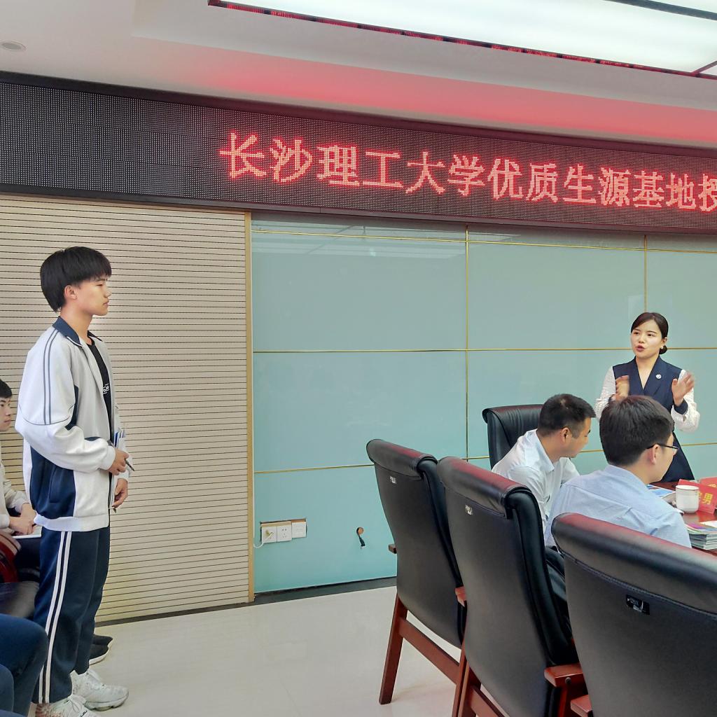 伍接朝介绍了学校本科人才培养的优势特色、招生就业等情况,希望双方共同在迎接湖南新高考改革过程中,利用地域优势,加强资源共享和联络互动,学校派出更多教授走进高中开展通识讲堂和志愿填报活动,欢迎高中组织师生走进长沙理工参观交流。高中校长表达了希望长沙理工携手基地学校、帮带基础教育,提升学校在湘西北农村高中的窗口和品牌地位。