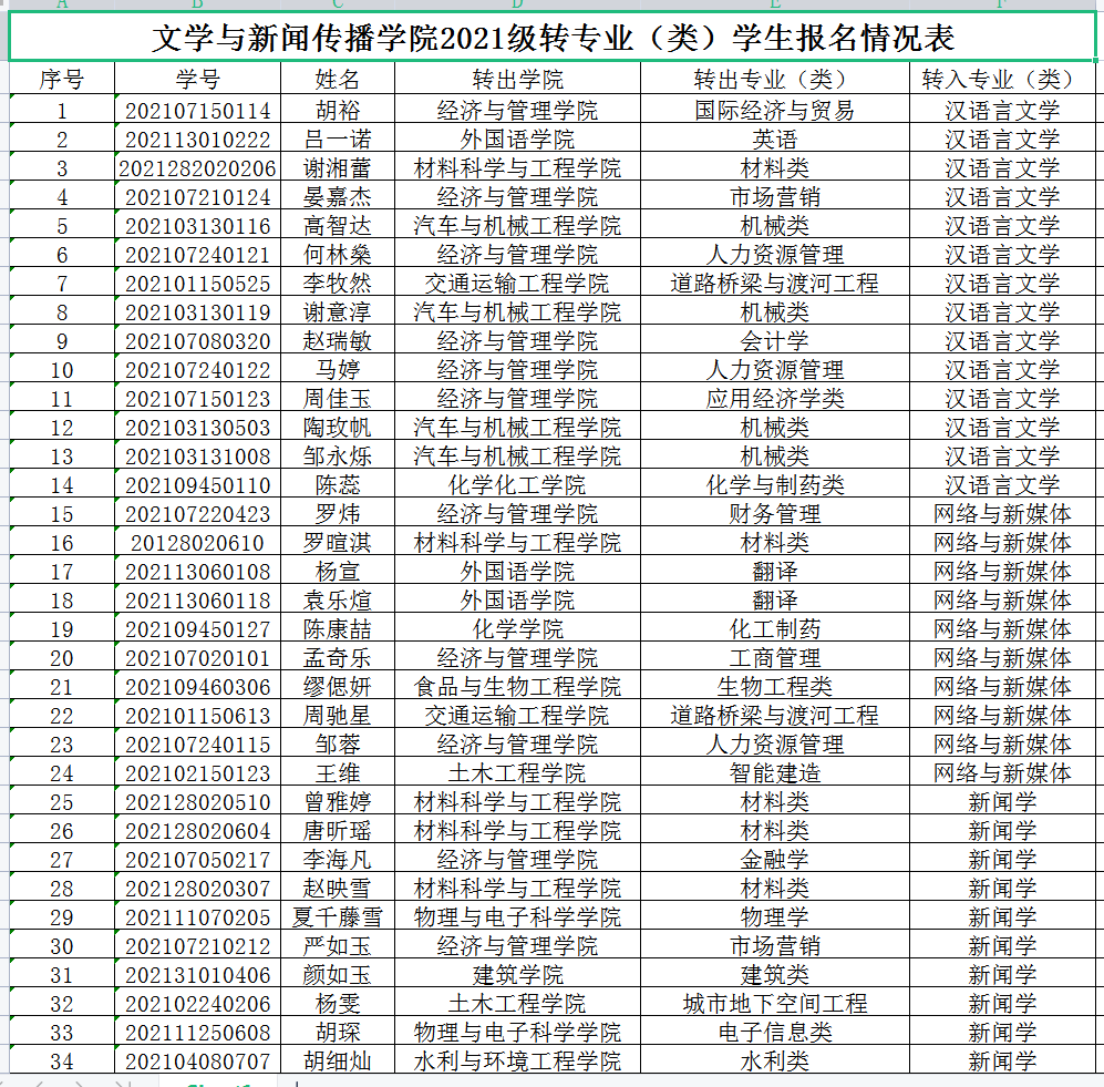 根据《永利集团88304官网本科生转专业管理办法》和学校《关于做好2021级在校本科生转专业(类)工作的通知》要求,学院接收转入我院的2021级学生报名。报名学生名单如下,现予以公示。公示期三天,公示时间为4月14日至4月16日。如有异议,请向学院教务办反映,电话85256150 黄老师。