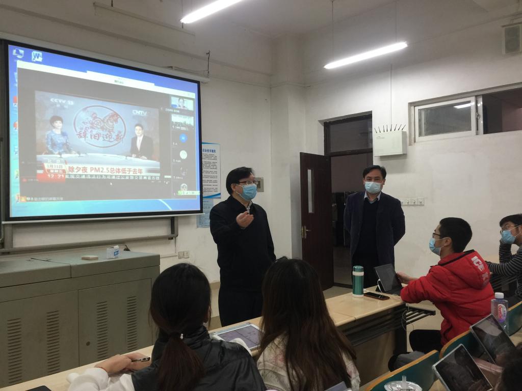刘建明还深入到新闻专业学生课堂,检查线上教学和学生佩戴口罩情况,与学生进行了交流,他说,从省内相关高校出现疫情后的防控效果看,佩戴口罩是阻断传播的有效措施之一,希望同学们在公共场所一定佩戴好口罩,做好个人的防控,同学们纷纷表示赞同。