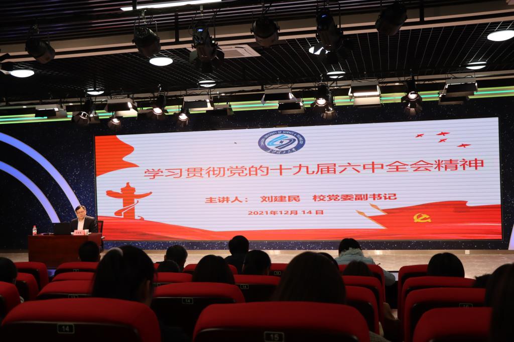 为深入学习贯彻党的十九届六中全会精神和湖南省第十二次党代会精神,根据学校党委安排,12月10日下午,学校党委副书记刘建民教授在文科楼B300为我院师生作党的十九届六中全会和湖南省第十二次党代会精神学习解读辅导报告。辅导报告会由学院党委书记伍接朝主持,学院全体教职工及学生代表聆听辅导报告。