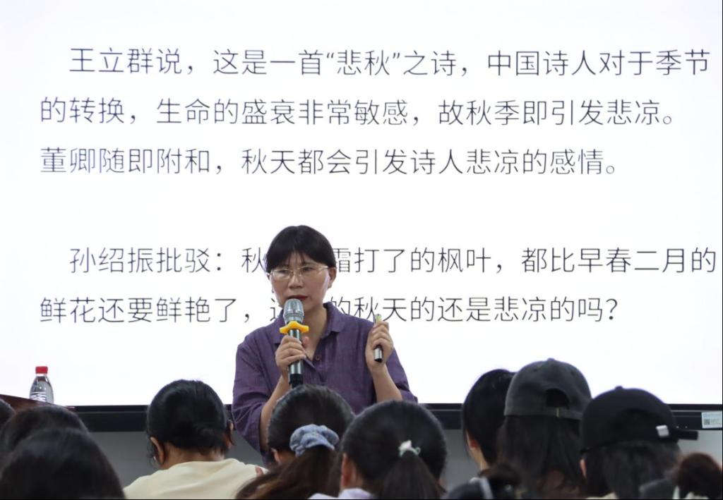 讲座最后,宁淑华教授指出自晚清废除科举后,古典诗文教育断层,导致公众对诗词解读普遍“似是而非”这一现象,呼吁同学们在诗词理解上应重视诗词的精准解读,避免过度娱乐化或主观臆断,回归文本本身与文化传统。此次讲座通过多维度的解析,让同学们深刻认识到诗词解读需兼顾语言、文化与逻辑。这将助力同学们更好地领略古典文学的魅力,延续文化命脉。(文/唐家歆 图/唐家歆 一审/李梦成 二审/侯承相 三审/刘建新)