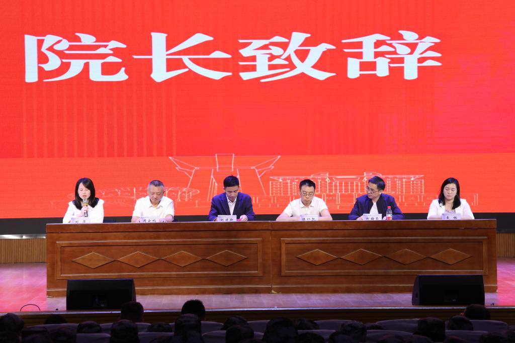 典礼在庄严的国歌声中开始。院长刘建新首先致辞,他希望同学们在大学阶段锻炼四种能力:一要有安享独处的能力,真正认识自己;二要锻炼控制欲望的能力,认清现实、拒绝诱惑;三要培养高效学习的能力,不能只做“战术大师”,更要有长远眼光,做个“战略大师”;最后要培养抗挫折的能力,以积极的心态面对生活挑战。他希望全体新生珍惜时间、好好规划自己的人生,肩负年轻的梦想,担当时代的使命,追逐属于自己的诗和远方。