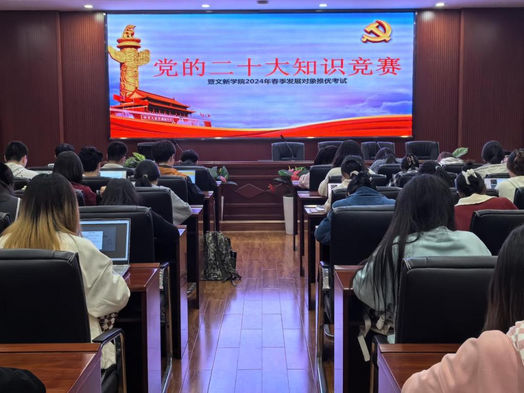 为贯彻落实党的二十大精神,积极探索“党建+互联网”新模式,进一步提升积极分子的理论知识水平,3月27日19时,“党的二十大知识竞赛暨文新学院2024年春季发展对象推优考试”于永利官网金盆岭校区九号教学楼217-218室成功举行。