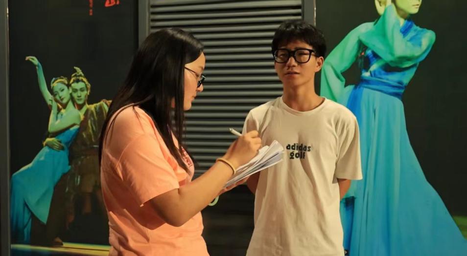 抵达舜皇里产业园后,实践团全体成员观看大型文旅剧目《爱在崀山》,舞台剧演出综合民族歌舞、原创音乐等多种艺术形式,以实景现场结合多媒体影像和现代声、光、电等多种技术手段,多层次地展现了崀山悠久灿烂的民族文化与独特的民族风情。演出结束后,实践团成员对现场观众进行了采访,观众表示,在这场演出里深刻地体会到崀山历史文化的源远流长,演出的用心程度和演出效果令人感到十分震撼。