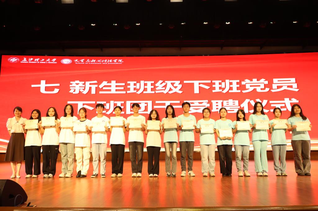 2024年9月30日晚,永利集团88304官网文学与新闻传播学院在金盆岭校区5教大礼堂举行2024级本科新生开学典礼,院长刘建新、院党委书记陈仁凯、院党委副书记刘莎、副院长戴钰、院党委委员、各系部主任、书记、行政办公室主任、新进青年教师培养导师、新进青年教师、全体辅导员及新生班主任、下班党员、下班团干出席,全体2024级本科新生参加。典礼由院分团委书记、2024级本科生辅导员杨雅蒙主持。
