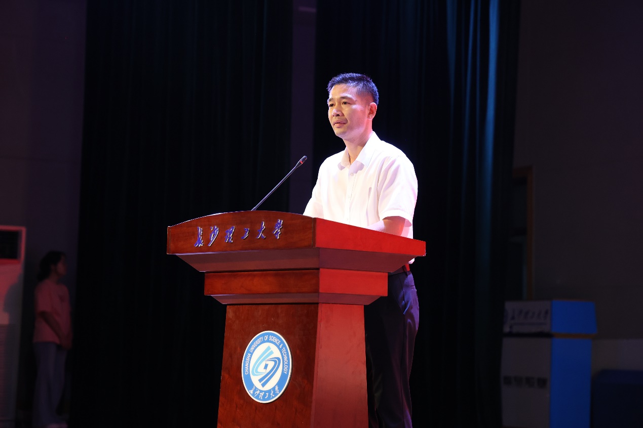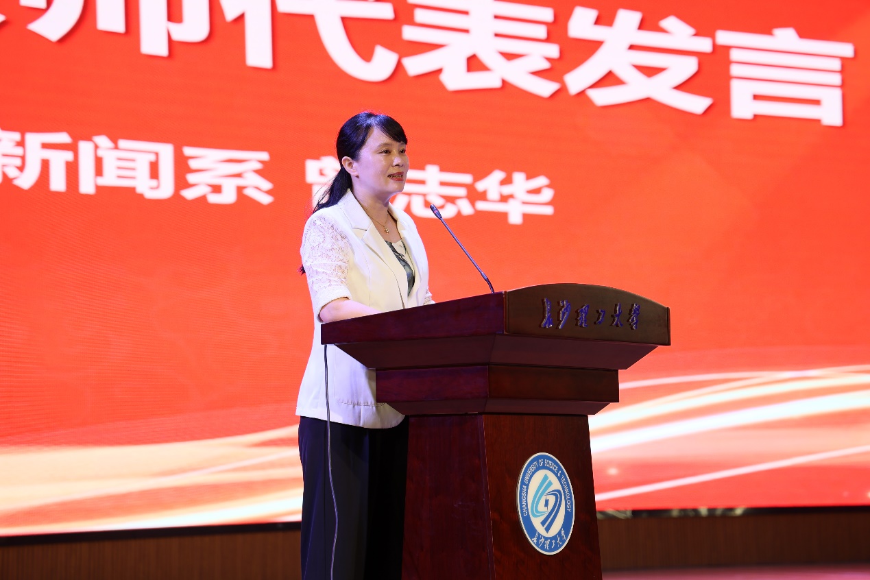 院长谆谆教诲润人心田。其后,2024年度永利集团88304官网教学贡献奖获得者新闻系曾志华老师发言,给出“好好去爱”“读万卷书行万里路”两句话,希望同学们做到强健身体、涵养心灵、管理时间三件事,并以优秀校友事迹激励学生,传递长理荣光。