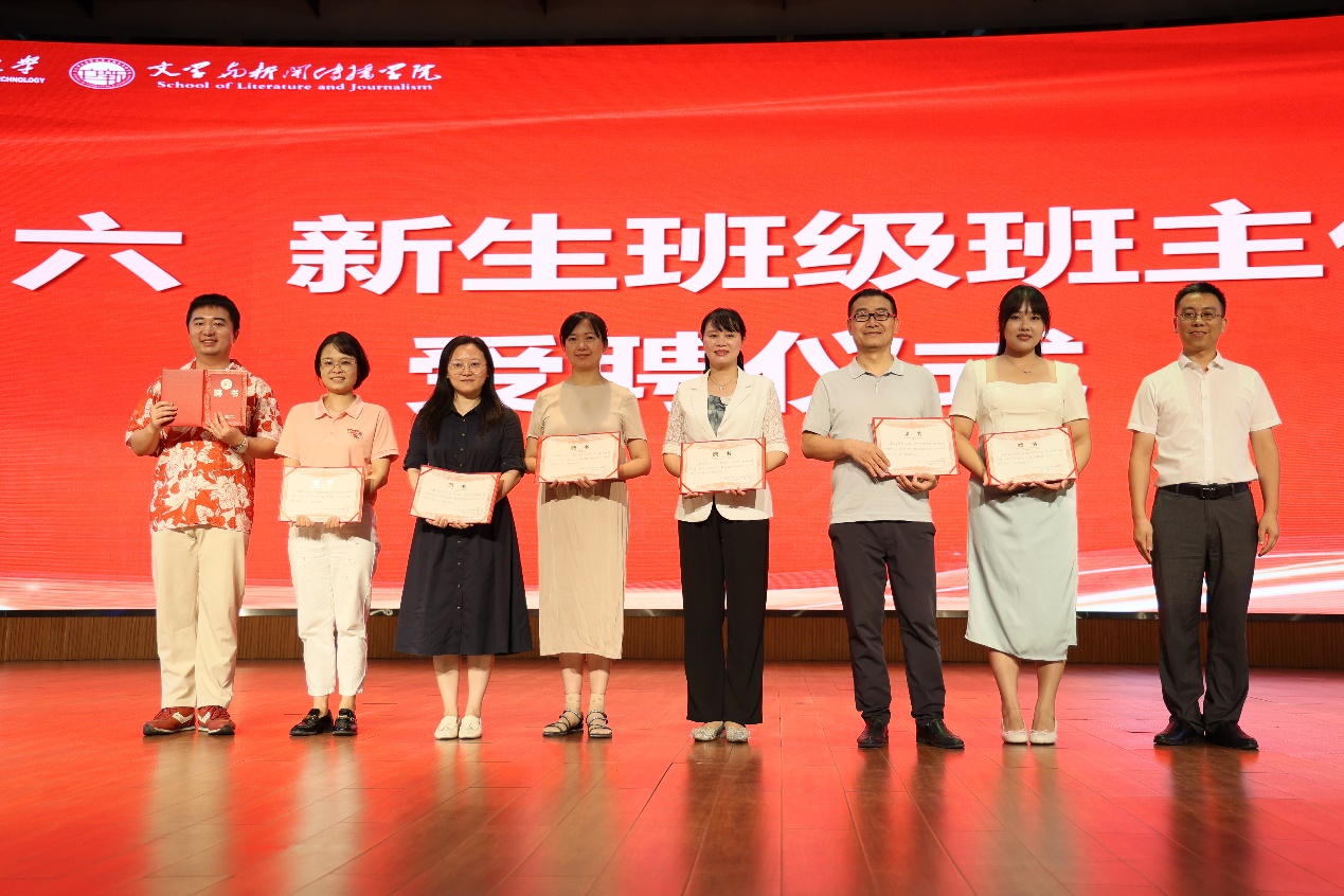 师徒结对传帮带,薪火相传铸未来。接着举行新进青年教师入职仪式和本科新生班级班主任、下班党员、下班团员受聘仪式。入职仪式上,培养导师冯利华、戴钰为两位新进青年教师刘海兰和赵华健佩戴校徽,赠送学院教学文创套装并合影留念。