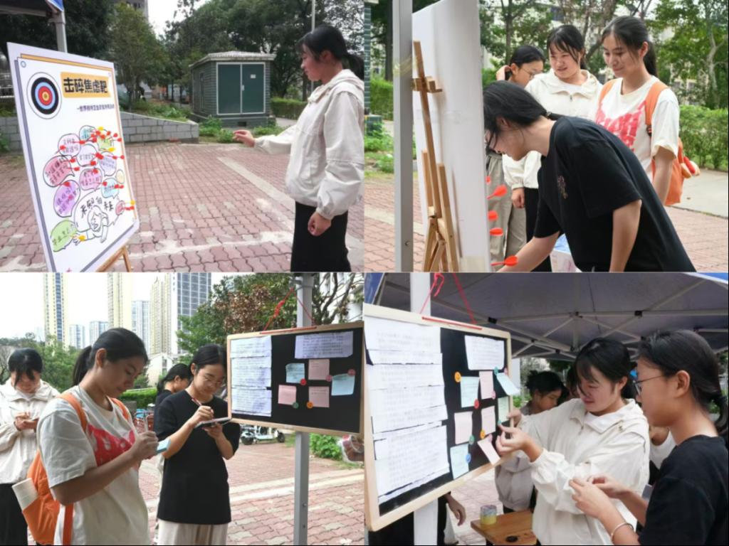 为帮助同学们缓解焦虑情绪,增强心理调适能力,在第八届世界精神卫生日知识宣传周来临之际,文新学院于10月19日在金盆岭校区西六宿舍前坪开展了一场以“击碎焦虑,向阳逐梦”为主题的击碎焦虑靶活动。