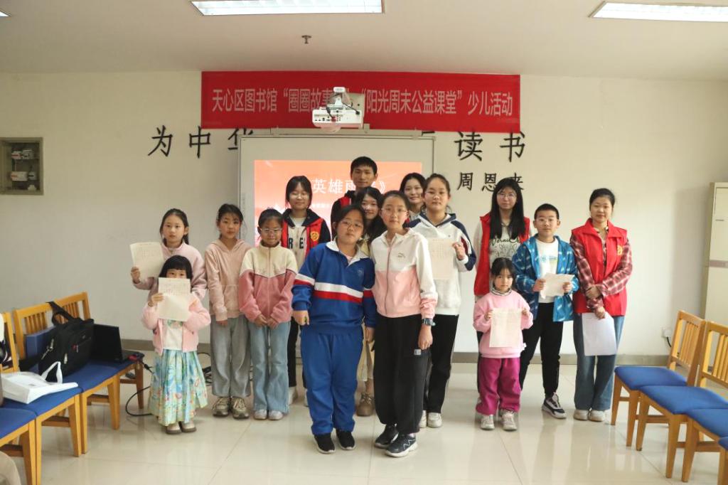 传承服务精神,凝聚志愿热忱,文新学院坚持开展阳光周末公益课堂活动,丰富小朋友们的课外知识,培养家国情怀,初步建立小朋友们对民族历史的认同感,并鼓励他们将红色精神融入日常学习和互助行为中。