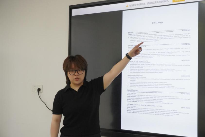 在简历与专业选择的部分,唐迎家结合自己的简历,细致解读了简历和个人陈述的撰写要点。她表示,这些材料应紧密围绕申请的学校和专业进行个性化设计,突出自身优势与专业契合度。同时,她还建议同学们在选择专业时,要多做调研、全面了解,确保选择的专业符合自身兴趣和职业规划。