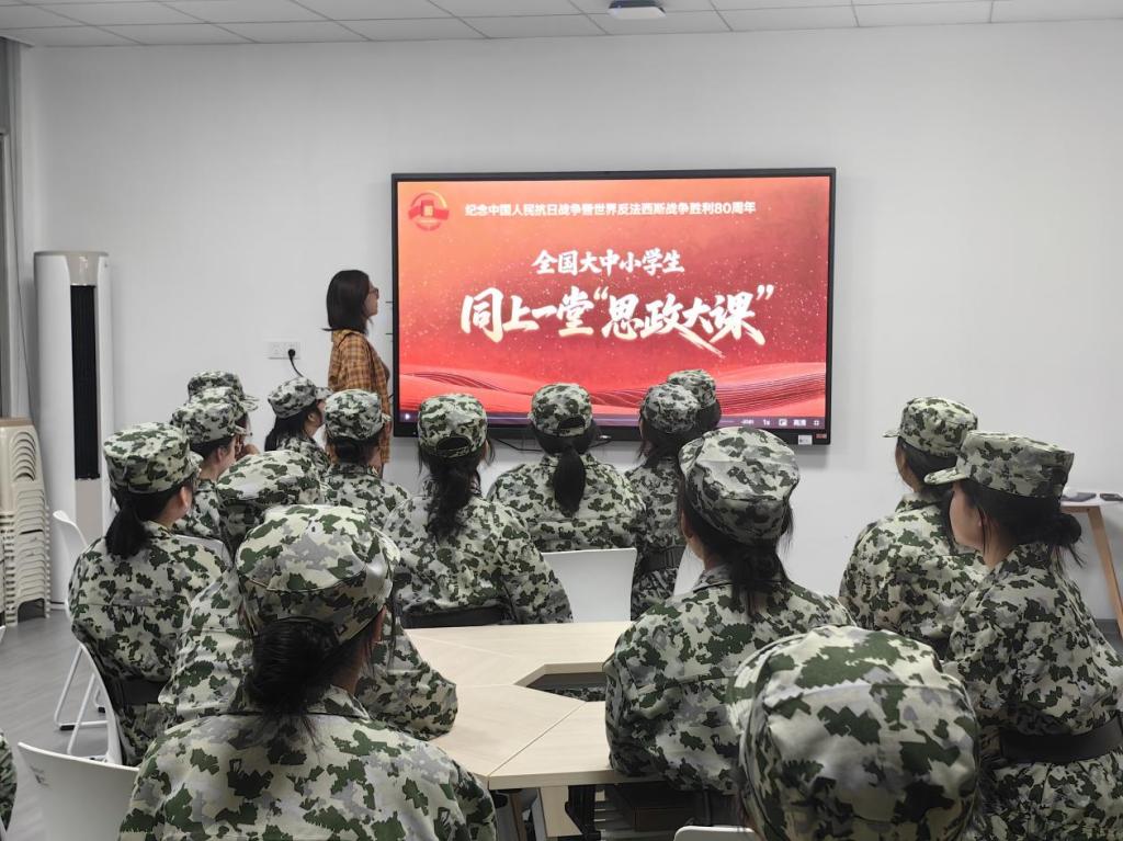 大一新生着军训服装有序就座,通过课程中“青年与抗战”的案例对比,感悟“一代人有一代人的长征”的深刻启示;团学干部结合自身学生工作实际,纷纷表示要传承抗战时期青年先锋奔赴前线的热血担当,在校园活动组织、志愿服务中主动作为。全体党员佩戴党徽认真聆听,新闻学本科生党支部王舒涵同志在观看后动情地说:“爱国不仅是铭记历史,更要转化为实干担当。抗战精神是跨越时空的宝贵财富,我们要做有骨气、有底气的新时代青年。”