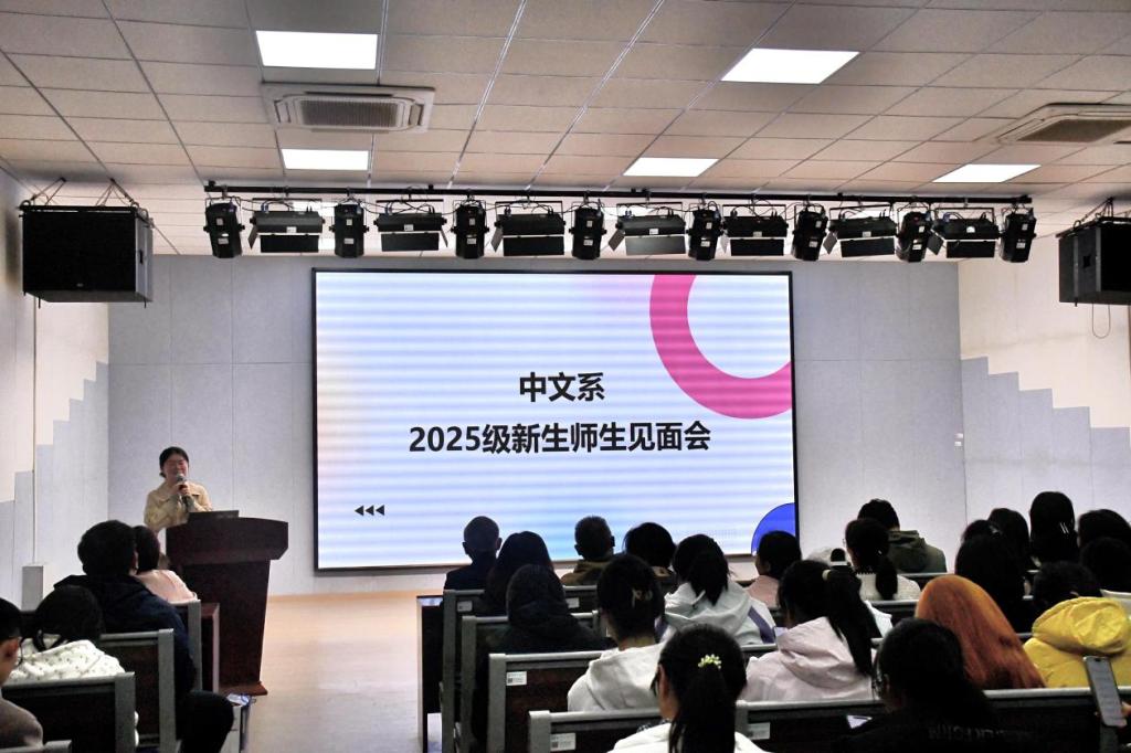 秋意渐浓,书香正暖。10月21日下午,永利集团88304官网金盆岭校区9教113教室内,一场别开生面的新生见面会如期举行。由文新学院中文系精心组织,三十余位教师与汉语言文学专业2025级全体新生齐聚一堂,在院党委委员兼系主任黄婧老师的主持下,共同开启了一场名为“中文之约”的温暖旅程。