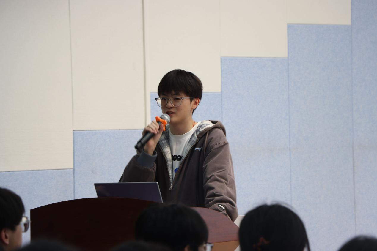 分享环节中,肖宇航结合自身经历,从多维度展开讲解。在竞赛经验方面,他强调高绩点是基础,建议大一广泛尝试、大二聚焦优势项目;并分享了大英赛“刷题、记单词、练速度”与写作竞赛“多记多背、多读文本、多写练笔”的实用策略。在现当代文学学习方面,他推荐以钱理群的《现代文学三十年》以及洪子诚的《当代文学史》为核心教材,结合作家传记理解作品,注重批判性思维的培养。在文学评论写作方面,他指出要确立核心论点并从文本矛盾或核心意象切入,避免读后感式表达,明确专业创作边界。同时,肖宇航鼓励在场同学将竞赛视为自我提升的成长旅程,通过竞赛实现学术能力、团队协作等软实力的综合提升。